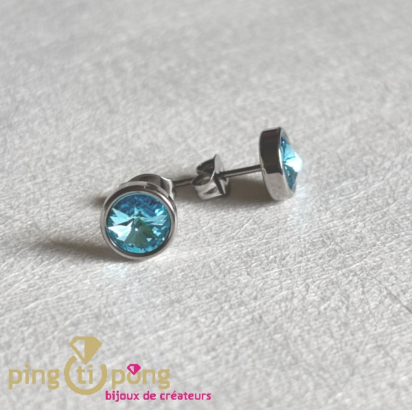 Boucles d’oreilles en acier inox et cristal de Swarovski® azur « Scintille » de SPARK